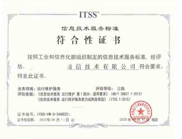 持有《信息技术服务标准ITSS符合性》(运维服务能力成熟度三级)满一年以上。